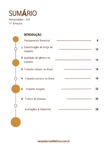 Esta apostila conta com 6 temas de HUMANIDADES E CIÊNCIAS SOCIAIS PARA O 3º ANO EJA – 1º BIMESTRE – EDUCAÇÃO PARA OS OBJETIVOS DO DESENVOLVIMENTO SUSTENTÁVEL – PLANO DE CURSO DE MINAS GERAIS 2024.