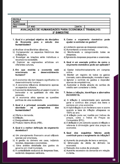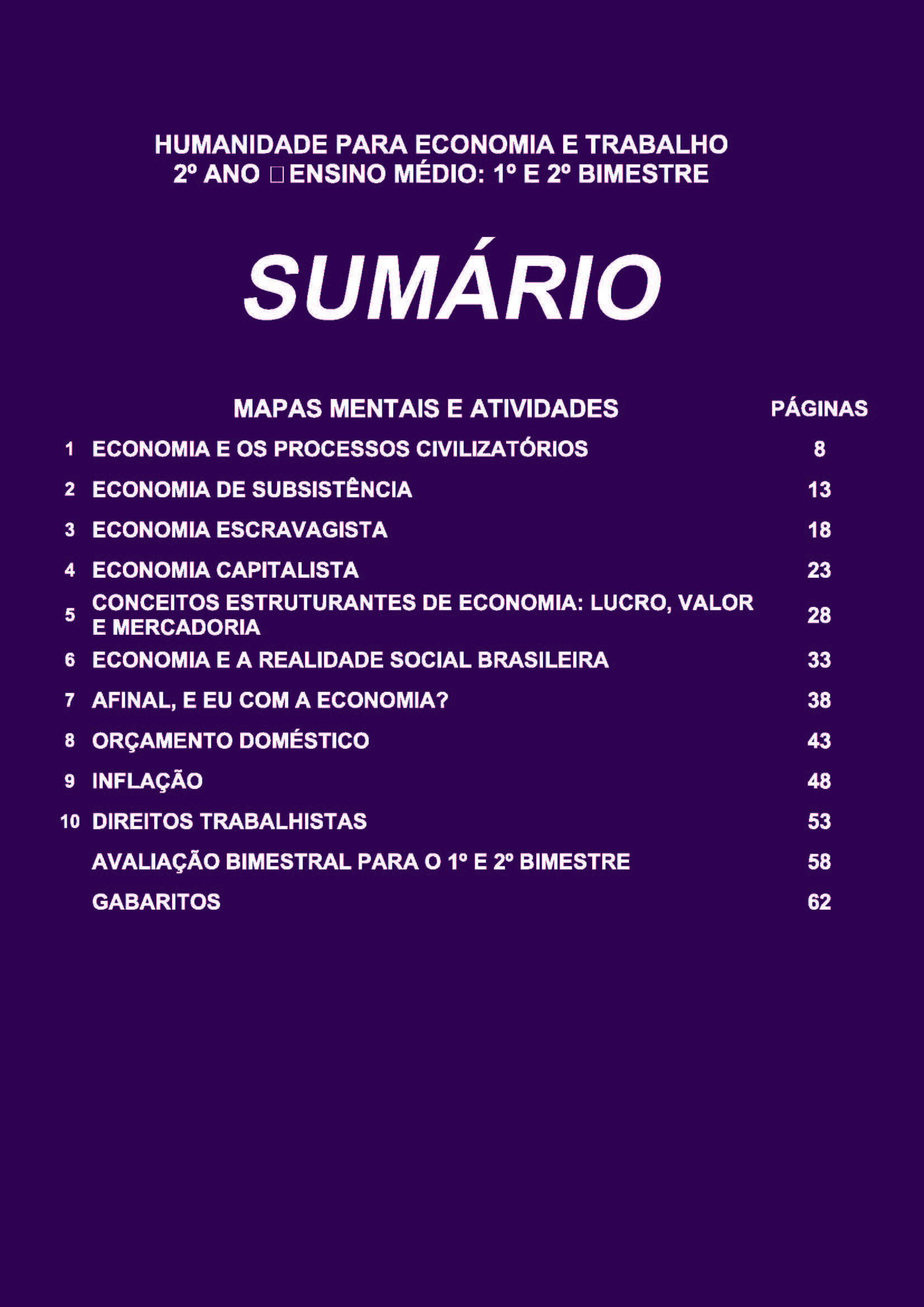 Esta apostila conta com 10 temas de HUMANIDADES PARA ECONOMIA E TRABALHO PARA O 2º ANO – 1º E 2º BIMESTRE – PLANO DE CURSO DE MINAS GERAIS 2024.