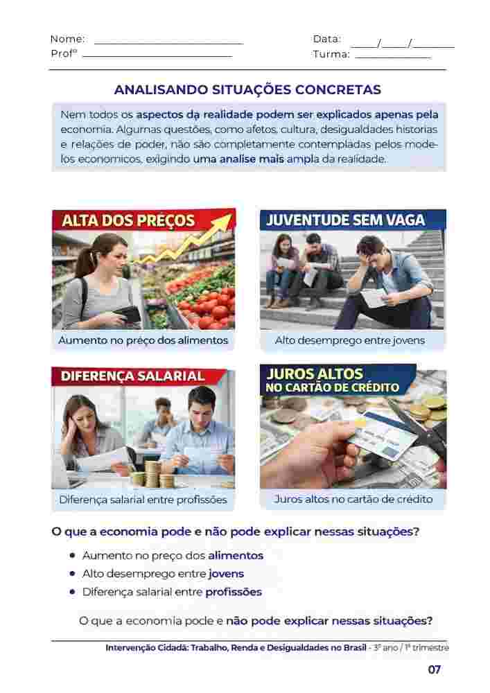 • Atividades práticas de análise de problemas sociais, leitura crítica da realidade e construção de soluções.