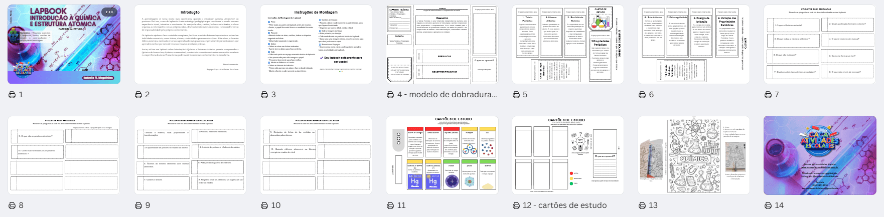 📚 Cada Lapbook tem 14 páginas repletas de conteúdo relevante para o ensino de Química.