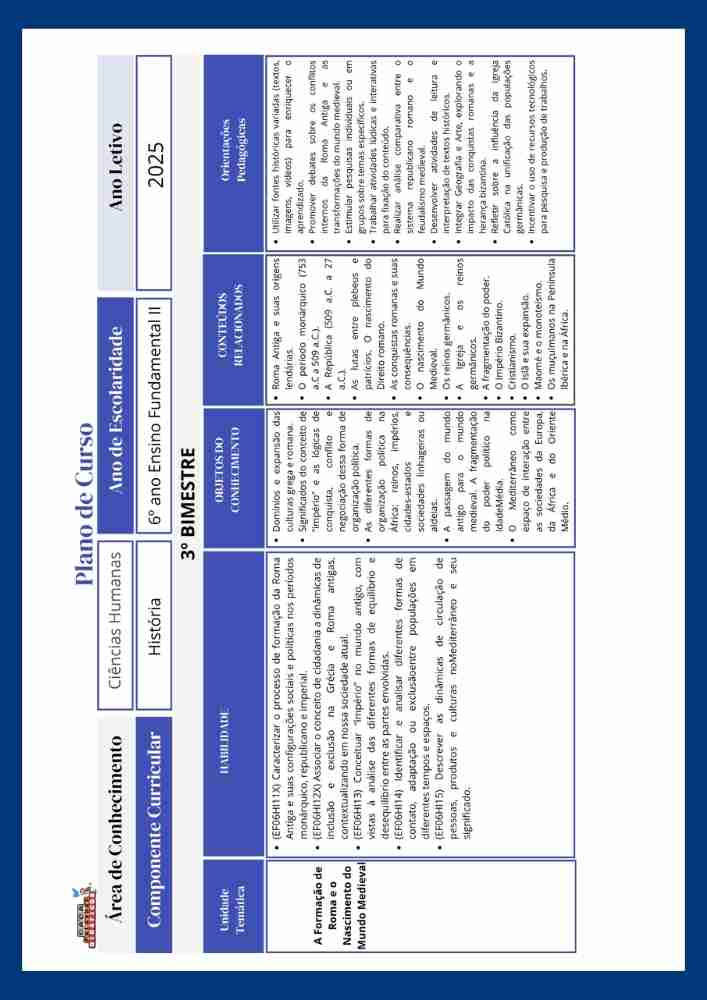 Este combo é referente ao 3º BIMESTRE, de acordo com o PLANO DE CURSO DE MINAS GERAIS DE 2025 para o Componente curricular de HISTÓRIA para o Ensino Fundamental 2 (6º ao 9º ano). Este projeto terá 16 apostilas com atividades variadas. As atividades contém os códigos de Habilidades BNCC. Em cada uma das apostilas você encontrará: