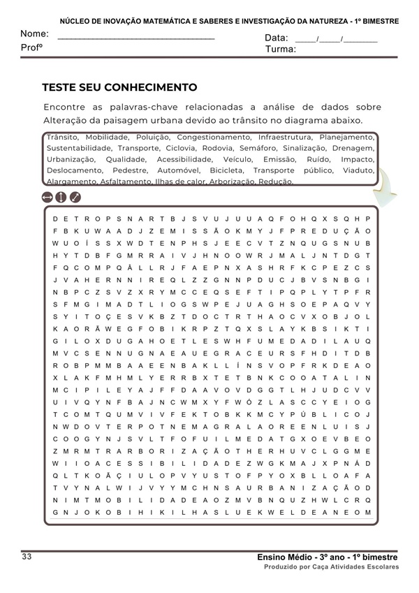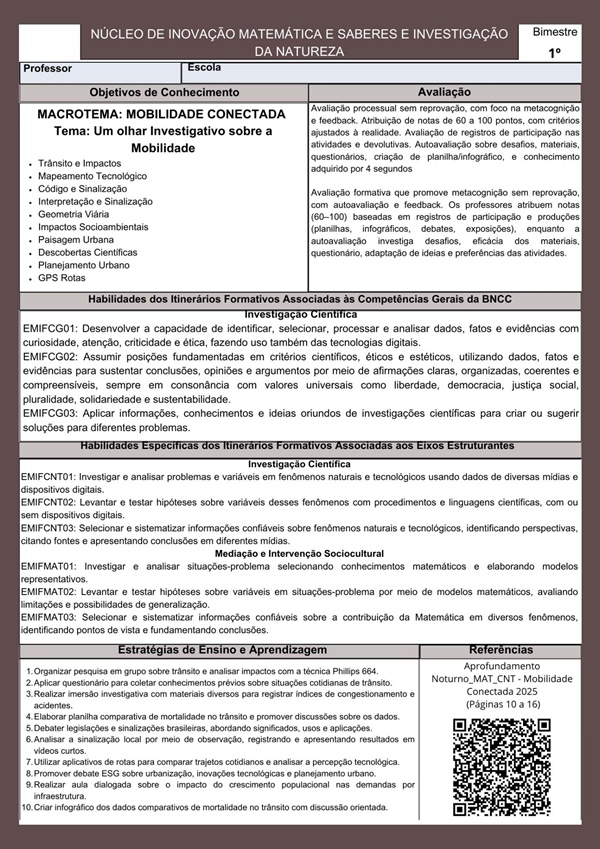 Esta apostila apresenta 8 temas para o Itinerário Formativo de NÚCLEO DE INOVAÇÃO MATEMÁTICA E SABERES E INVESTIGAÇÃO DA NATUREZA – 3º ano: 1º bimestre, de acordo com o Plano de Curso de Minas Gerais 2025. Cada tema inclui de 4 a 5 páginas de atividades diversificadas, proporcionando uma abordagem ampla e dinâmica para o desenvolvimento do itinerário.