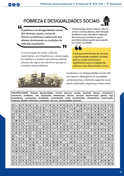 Esta apostila conta com 10 temas para o Itinerário Formativo de PRÁTICAS COMUNICATIVAS E CRIATIVAS – 2º ANO EJA: 1º BIMESTRE – PLANO DE CURSO DE MINAS GERAIS 2024.