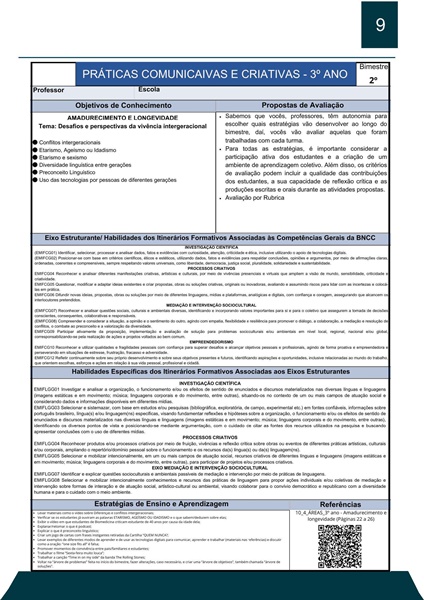 PRÁTICAS COMUNICATIVAS E CRIATIVAS 3º ANO – ENSINO MÉDIO: 2º BIMESTRE – PLANO DE CURSO DE MINAS GERAIS 2024