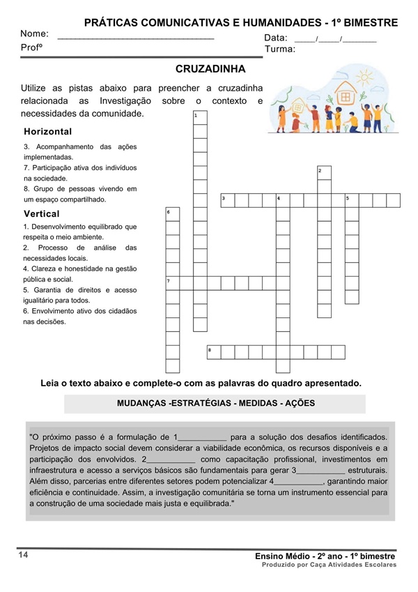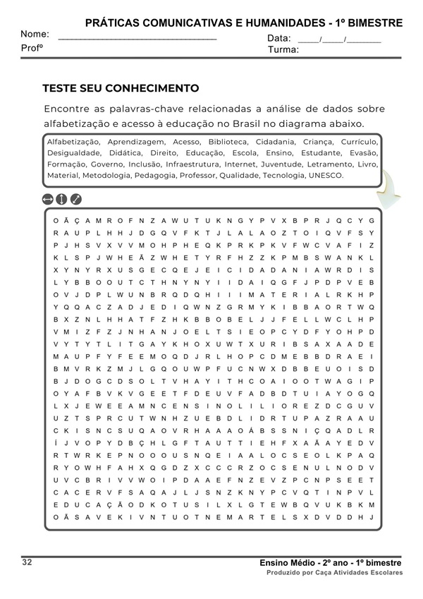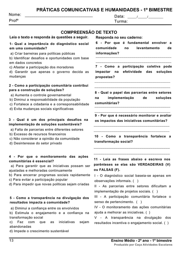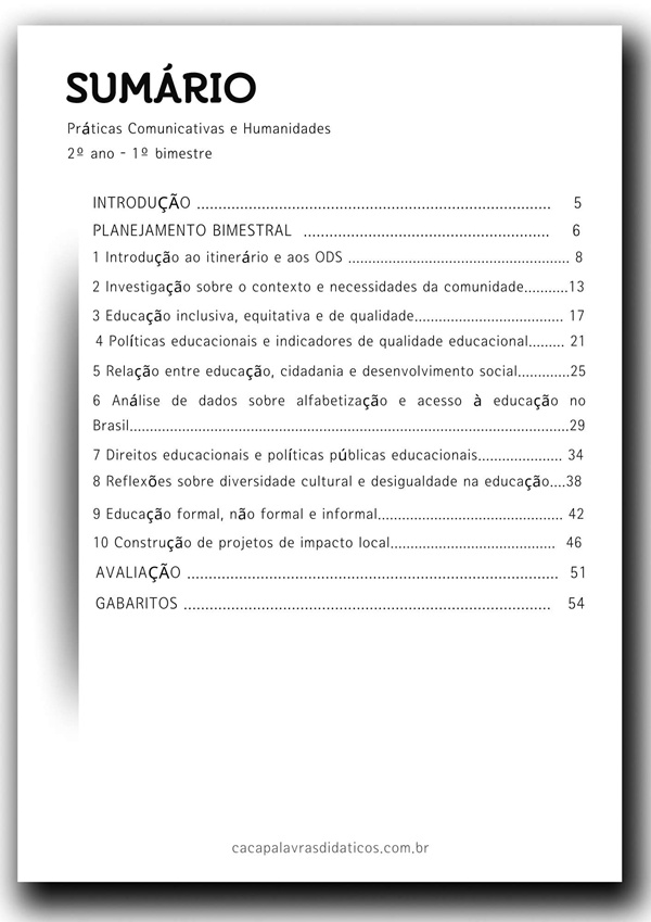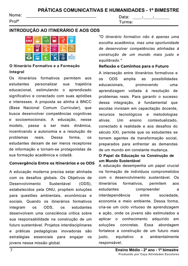 Esta apostila apresenta 8 temas para o Itinerário Formativo de PRÁTICAS COMUNICATIVAS E HUMANIDADES2º ano: 1º bimestre, de acordo com o Plano de Curso de Minas Gerais 2025. Cada tema inclui de 4 a 5 páginas de atividades diversificadas, proporcionando uma abordagem ampla e dinâmica para o desenvolvimento do itinerário.