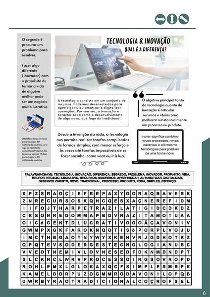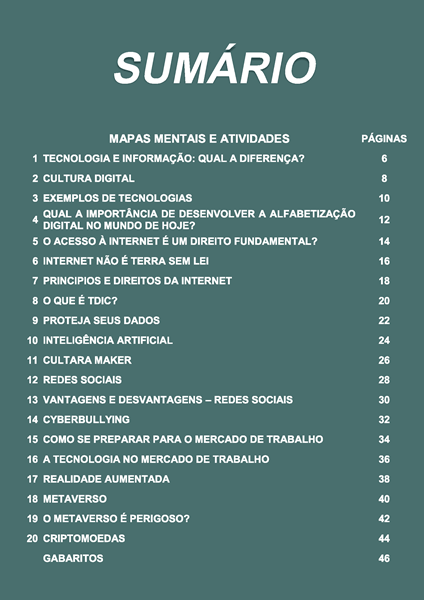 ESTA APOSTILA É O PRIMEIRO DE QUATRO VOLUMES QUE FAREMOS SOBRE TECNOLOGIA E INOVAÇÃO. SÃO 20 TEMAS DE ACORDO COM OS PRINCIPAIS CONTEÚDOS TRABALHADOS NO ITINERÁRIO FORMATIVO . TODAS AS ATIVIDADES POSSUEM MAPAS MENTAIS, CAÇA-PALAVRAS, CRUZADINHAS E CRIPTOGRAMAS.